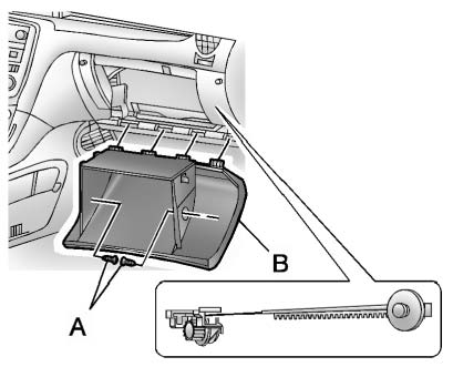 4. If needed, unsnap the instrument panel compartment assembly (B) from the instrument
